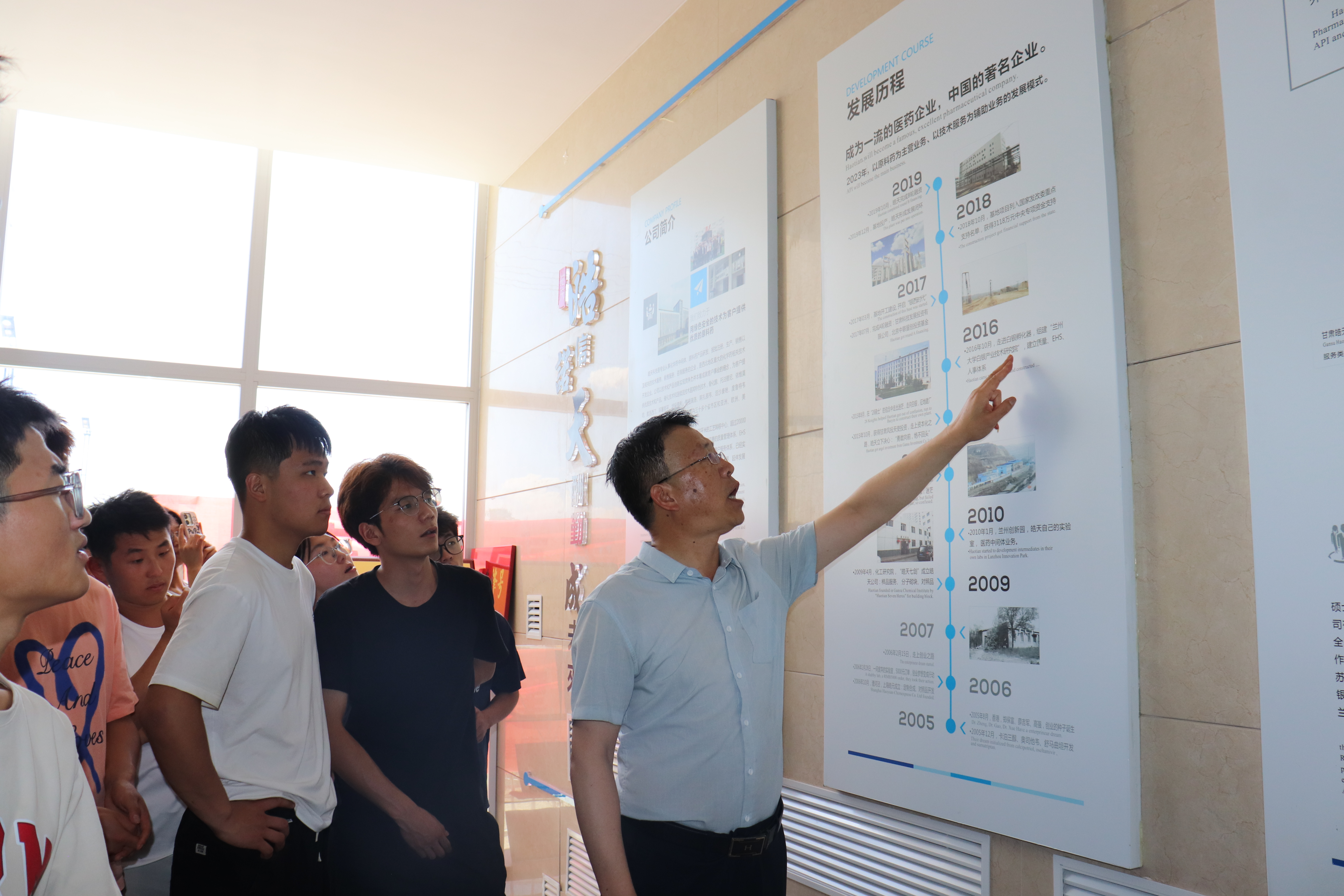 同學們首先步入皓天科技的一樓大廳,這里不僅是公司的門面,更是展示企業風采的窗口。在這里,皓天醫藥工會主席楊青熱情地迎接了師生們,并向他們詳細介紹了公司的輝煌成就、發展歷程以及主營業務。通過楊主席的生動講解,同學們對皓天科技有了更加深入的了解。